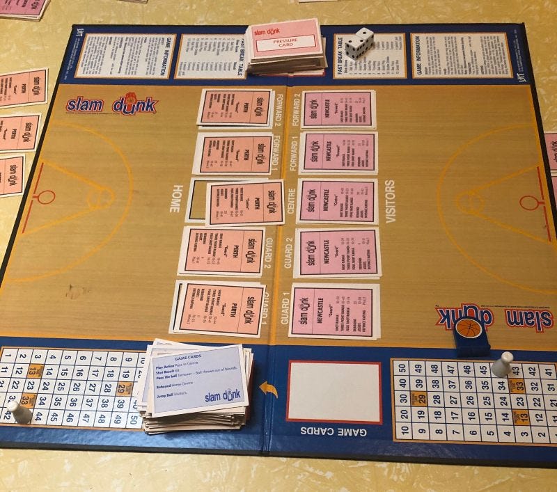 Some Aussie basketball fans may recognise the Slam Dunk board game immediately. For others, like myself, it's as if someone travelled back in time to mess with history. This looks like something that I should have known about, dammit, and the fact that it's only appearing on my timeline in 2020 is a crime.