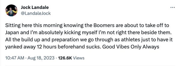 Jock Landale was a crucial part of that success, and he was set to be Australia’s starting centre once again at the World Cup. That was still the plan even as he sat out Australia's first two warmup games in Melbourne, and all was well when he returned in Thursday’s clash with South Sudan. He lasted just five minutes, though, before rolling his ankle and immediately hobbling down the tunnel. While scans will be needed to determine the specifics of the injury, it is expected to keep him in Australia and out of the tournament.