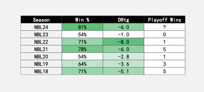 Tune into a TV broadcast, consume any audio or written content on the league, or listen to a new coaching hire, and you’ll hear ad nauseam that defence is the key to success in the NBL. For Melbourne United fans, they’ve lived that idea in recent campaigns, currently on track to finish the regular season with the best defence for a fourth time in seven years. Having never rated below average in defensive efficiency in Dean Vickerman’s tenure, United have used that strength to power themselves to a winning record in each season he’s been in charge, including two titles and now, favourites for a third.