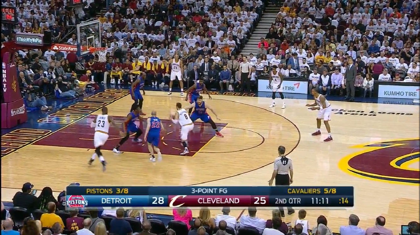 Let’s use some possessions from the Cavaliers game two victory over the Pistons to show how Dellavedova was able to effectively run the Cavs offence.