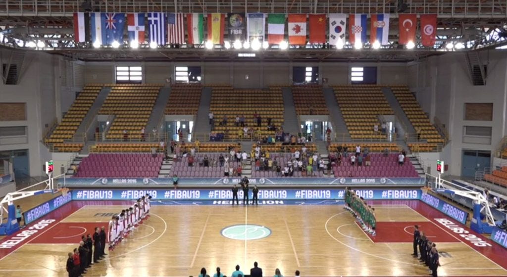 There is an emphatic cry of "Aussie Aussie Aussie Oi Oi Oi" from the stands at the Heraklion Arena #FUBAU19