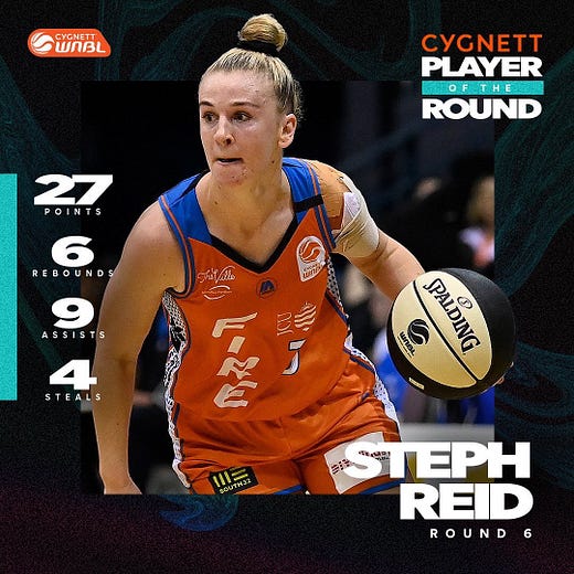 Despite her pass-first mentality, Reid can score in bulk when needed. Against the Perth Lynx, she had 27 points, expertly utilising on-ball screens and drawing on her craft as a ball handler to get herself open midrange shots. The game underlined how teams can’t simply sag off Reid and ask her teammates to make shots.