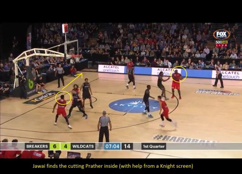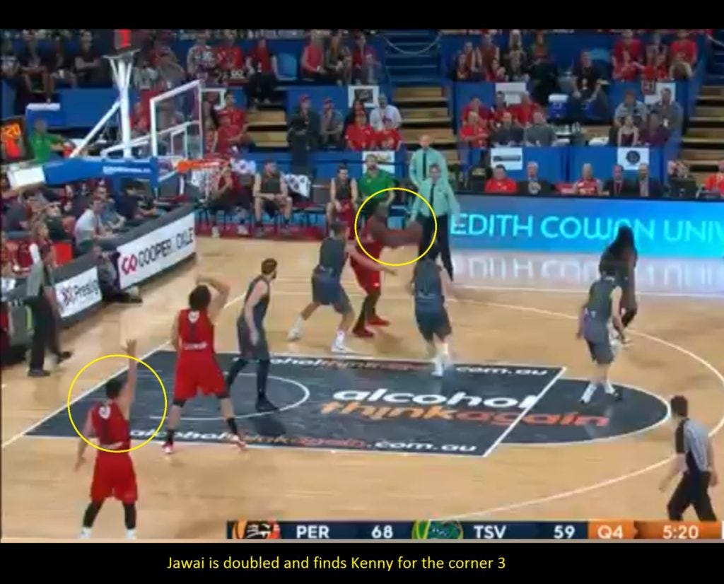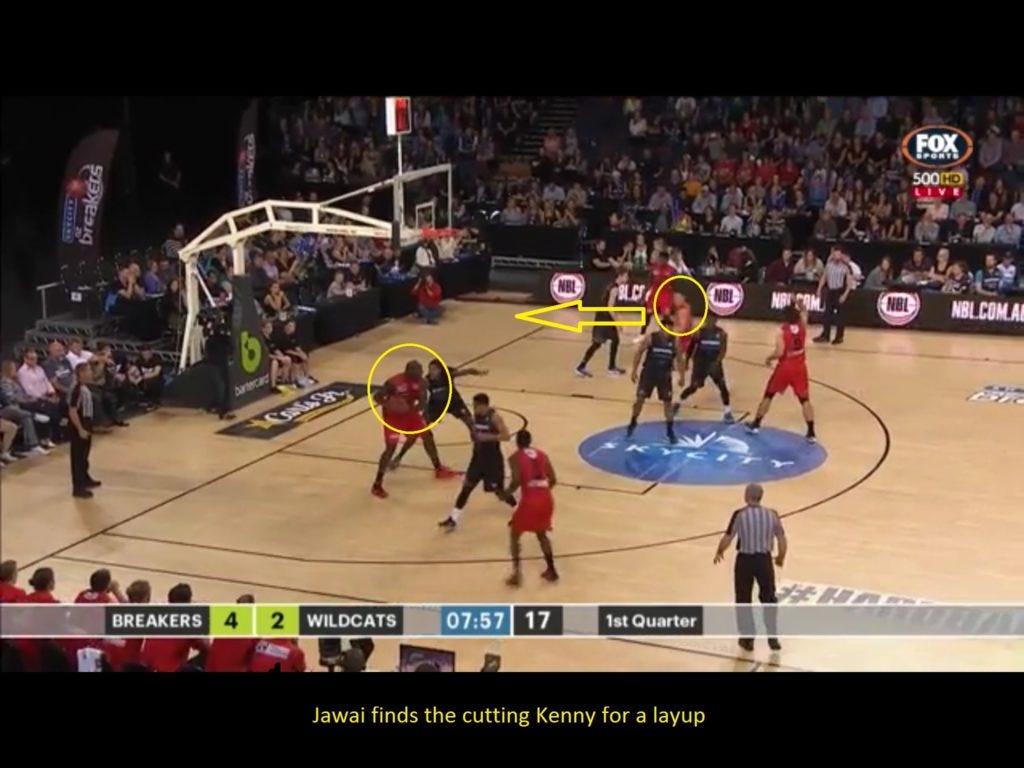 Opponents have been willing to send a double team to Jawai in the low post both early and often which has forced him into making a quick pass, either to a cutting teammate inside, or to a wide open three point shooter (usually the direct opponent of the help defender that is leaving their man to double).