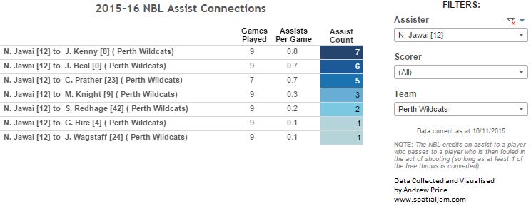 Using spatialjam.com’s ‘Assist Connections’ numbers, we can dig deeper to find out who the big man has been hooking up with on the court.