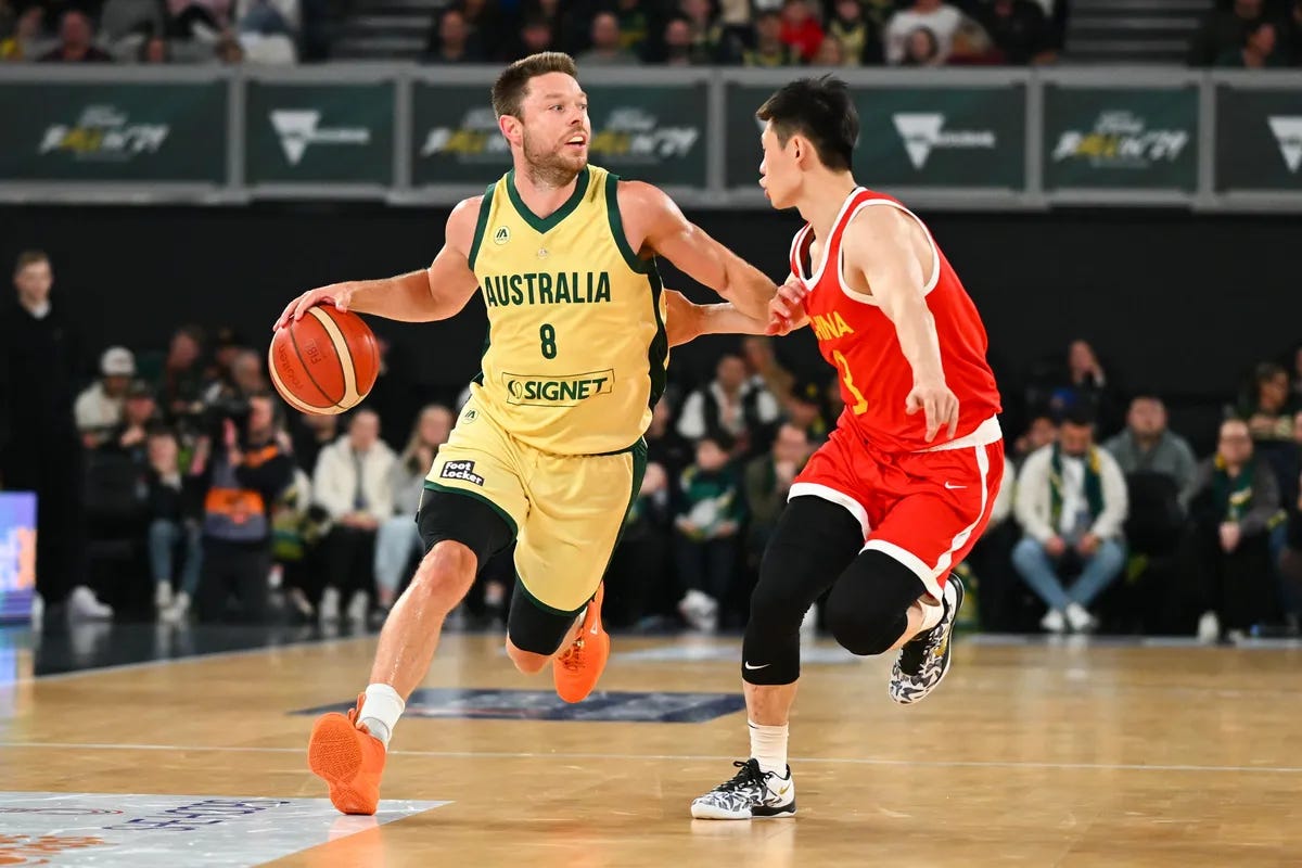 One year later, the first exhibition match against China presented an opportunity for Daniels to showcase his growth; Exum’s absence in that game meant Daniels naturally saw more time as the point guard in the first half. However, Daniels’ role as a point guard was far from functional, and the team continued to have a lacklustre offence. Despite playing 14 minutes, the Australian team only held a narrow three-point lead over China by halftime, highlighting the reality that Daniels still needed more time to grow as a playmaker. Given that he had not been given many opportunities to play in that role even with the New Orleans Pelicans last season, the situation was understandable, which led to the natural conclusion that Daniels might find it difficult to earn minutes in that role in the upcoming tournament. However, an intriguing change occurred in the second game against China. Head coach Brian Goorjian used Dyson Daniels as a combo guard alongside Josh Giddey, Danté Exum, and Matthew Dellavedova.