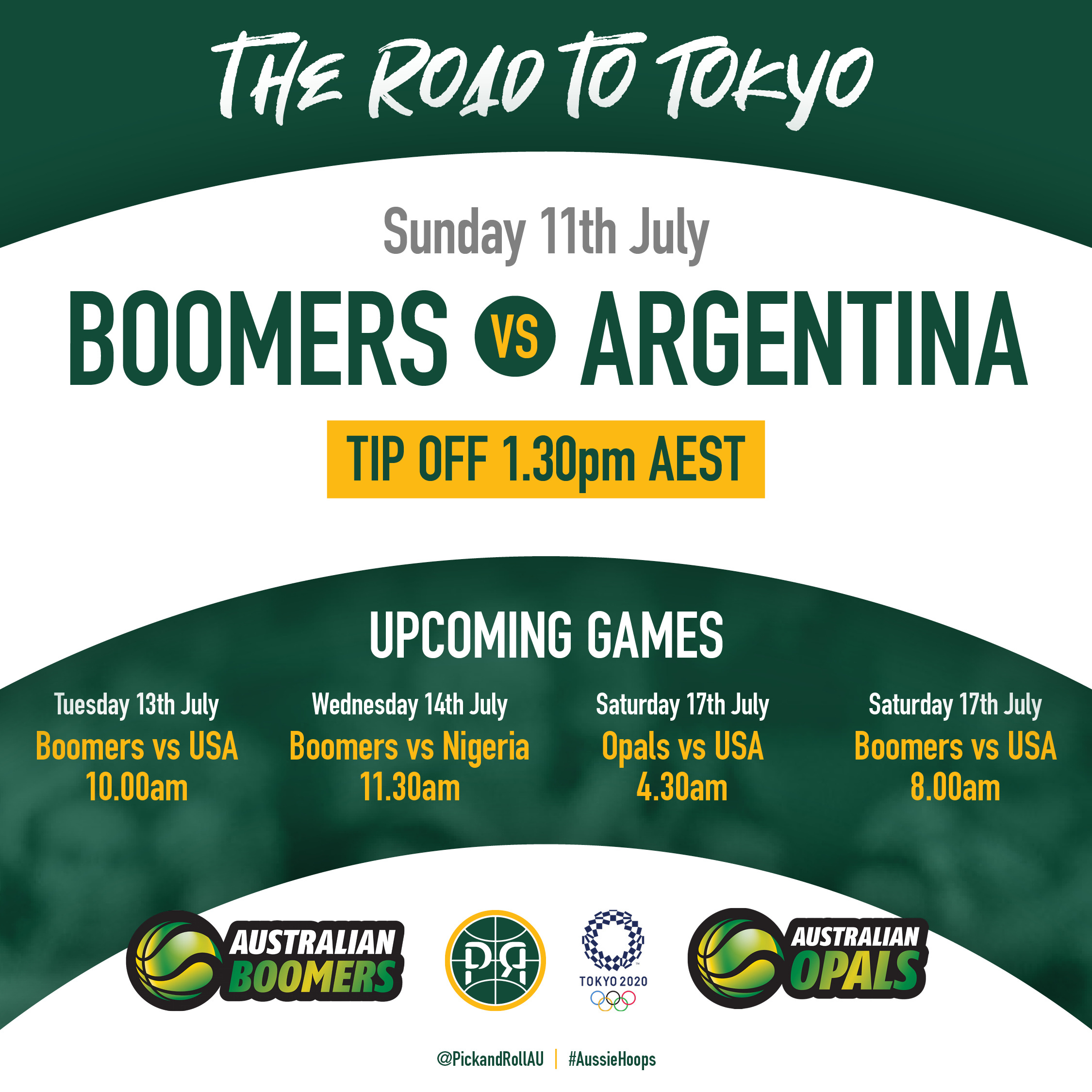The Boomers will begin their week of Olympic warm-up matches against Argentina on Sunday, 11th July 2021 at 1:30 pm AEST. They will also play the USA twice and Nigeria once before travelling to Tokyo.